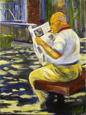 There’s Cigar Guy. You met him in the site’s header graphic. I thought he was a riot, sitting outside a classy women’s clothing boutique one sunny morning. My painting group is betting he’s waiting for his wife to finish spending all their money.