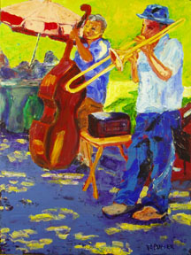 And what about the musicians I paint? Not sultry torch singers. Not glamorous on-stage shots of the rich and famous.