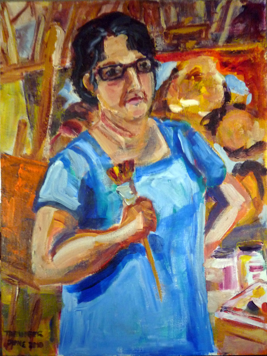 This week Marcy gently encouraged me to put aside my current project and try an “alla primo” self-portrait. Since my birthday is the 14th, it seemed appropriate to give myself the attention. And now I think it might make a nice birthday tradition. Here I am…or at least a version of me: