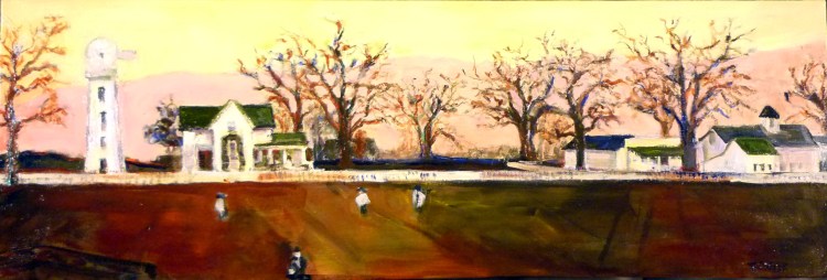 The palette is limited and look at those pastels! And where are the people? (Actually, four little dots in the field and two tiny tiny dots on the porch of the house.)