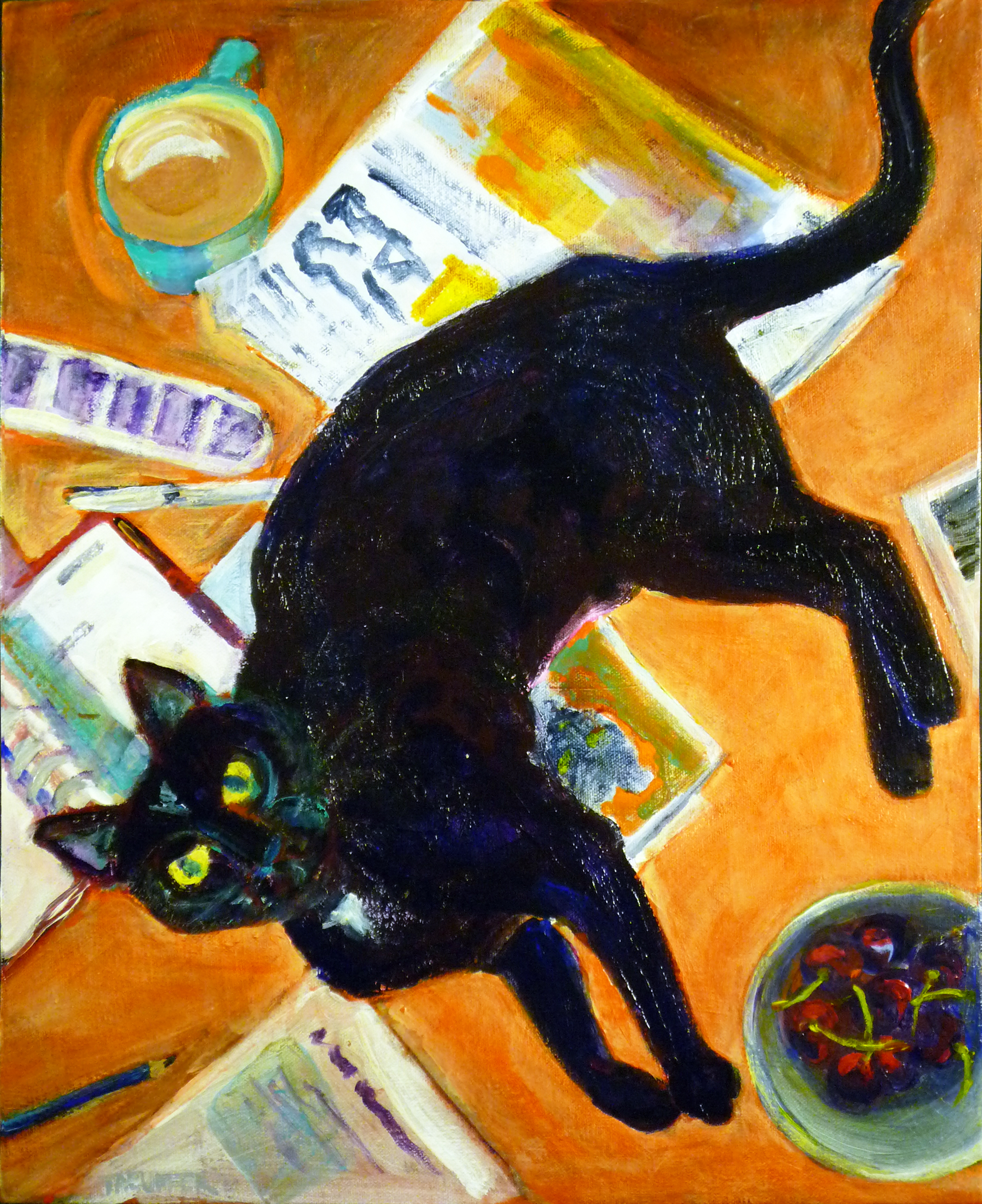 Favorite Felines Oscar’s Excellent Year Share this: Click to email a link to a friend (Opens in new window) Email Click to share on Facebook (Opens in new window) Facebook Click to share on X (Opens in new window) X More Click to share on Pinterest (Opens in new window) Pinterest By Joanne Joanne Taeuffer is an expressive painter. She lives in the Berkeley Hills and Healdsburg, CA, with her husband and their black cats, Oscar Wild and Percy. View all of Joanne's posts.